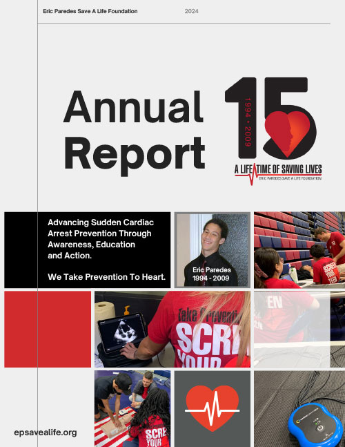 Each year tens of thousands of our kids continue to die from a silent killer that often has unrecognized symptoms or warning signs. How many children must suffer sudden cardiac arrest for our state and nation to give merit to the importance of prevention? From primary care to heart screenings, CPR/AED training to Cardiac Emergency Response Plans, each could literally mean the difference between life and death. The Eric Paredes Save A Life Foundation is committed to a strategy that will pursue standardized prevention of SCA in youth in the pediatrician’s office, on the field and in the classroom throughout California.